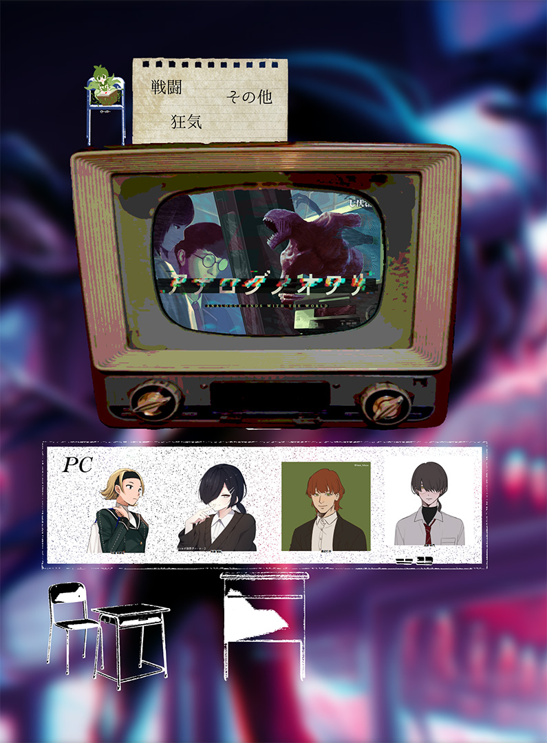 卓報告 アナログノオワリ 2025/7/3 アナログノオワリ 右城 美紗紀 新CoC「アナログノオワリ」著:七峰きざし様KP:千草さんPC/PL:瓜原 亜門/ヤニさんPC/PL:佐藤 優紀/むぅさんPC/PL:渡辺 仁奈/しもさんPC/PL:右城 美紗紀/ほっしらぶるふ初卓でした!新ルールについて遊びながら覚えていけてとても嬉しい ありがとうございました~! #らぶるふTRPG— ほっし (@hosh_iei_trpg) July 2, 2025 最終的に頭にアルミホイル巻いた変な集団だった kid_starいいね送信中です×※コメントは最大500文字、5回まで送信できます送信送信中です送信しました!