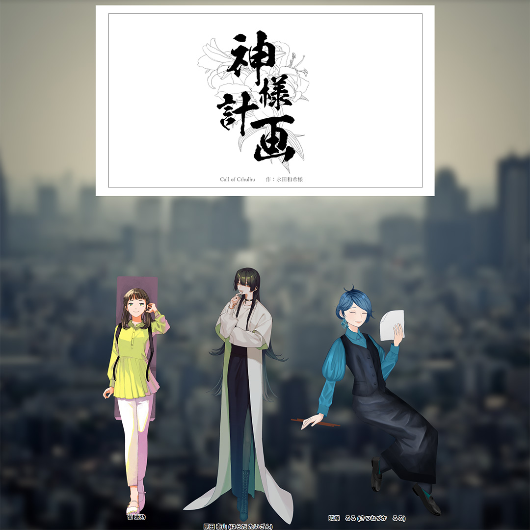卓報告 神様計画 2025/5/17 神様計画 蔔 恵乃 CoC「神様計画」著:永田和希様KP:村西さんPC/PL:原田 泰山/びょーさんPC/PL:狐塚 るる/はくさいさんPC/PL:蔔 恵乃/ほっしEND A—————大はしゃぎで遊んでしまいました めちゃくちゃ楽しかったです!!!ありがとうございました!!!— ほっし (@hosh_iei_trpg) May 17, 2025 バンドマン、水墨画家、ジャズバンド主婦のクリエイター集団でした kid_starいいね送信中です×※コメントは最大500文字、5回まで送信できます送信送信中です送信しました!